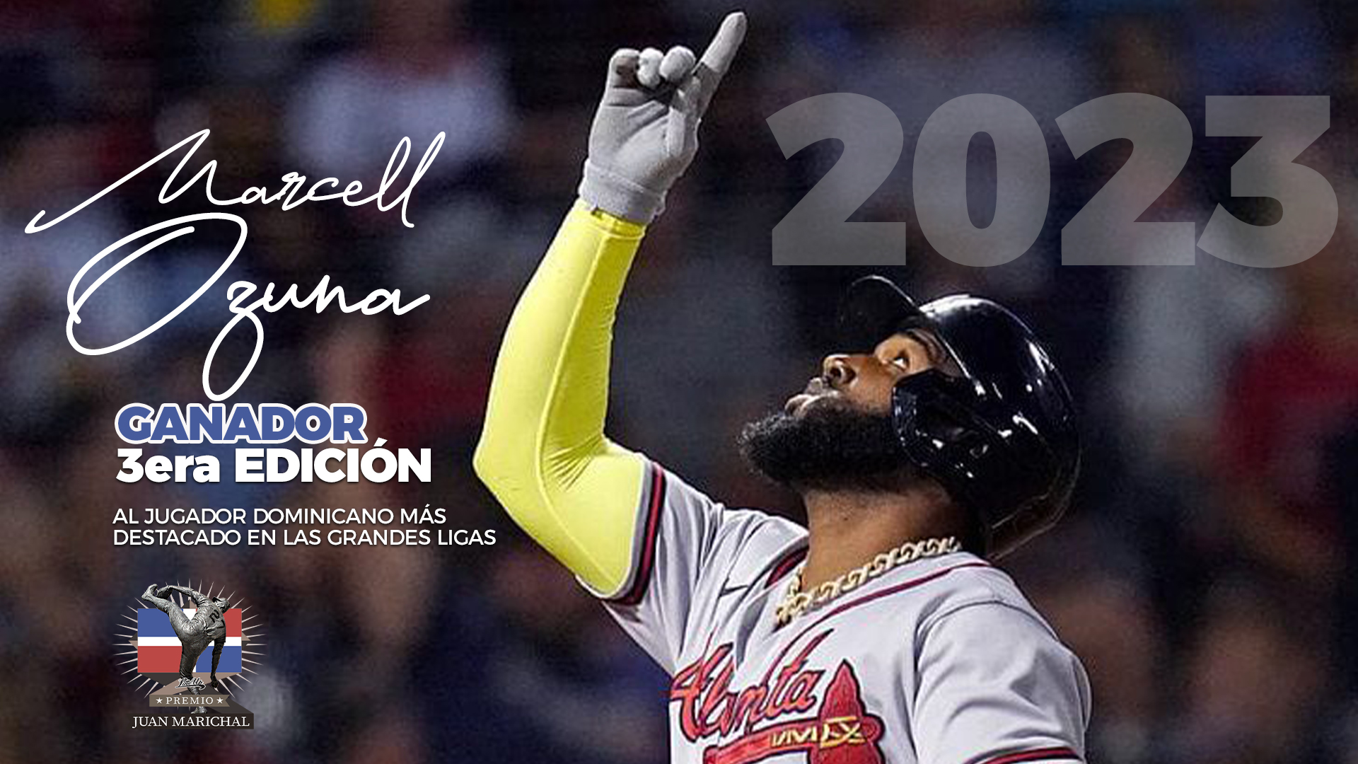 En un acto celebrado en Santo Domingo, República Dominicana, Marcell Ozuna recibió el galardón Juan Marichal de la temporada 2023, que le reconoce como el jugador quisqueyano más destacado en las Grandes Ligas. Ozuna obtuvo 368 puntos del panel de cronistas de béisbol elegibles para votar, superando por 10 puntos al jardinero Juan Soto de San Diego Padres y por 15 puntos al patrullero Julio Rodríguez de Seattle Mariners.